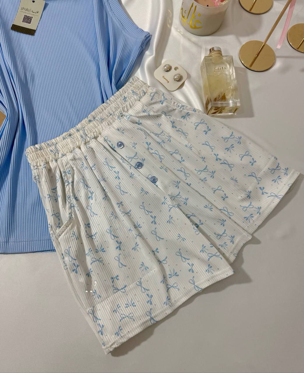 الموديل: بيجامه ستان زراير تريندي
